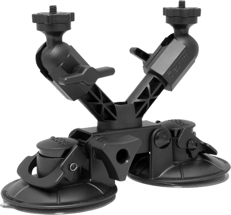 - The double suction cup mount allows you to mount two cameras at the same time. Stable mounting on smooth surfaces, load capacity up to 3.6 kg, 4 points of articulation and 2 fully adjustable ball heads. Perfect for shots in motion - by car, boat, motorcyc