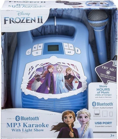 - Portable karaoke set with a microphone and a Frozen theme. It allows you to sing your favorite songs anywhere. The perfect gift for little music and film fans!
