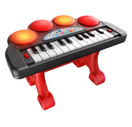The piano allows for a lot of fun, it has 27 keys, three playing modes (selectable piano, organ or guitar), nine drum sounds and as many as 13 built-in songs by the most famous artists such as Chopin, Bach or Mozart.