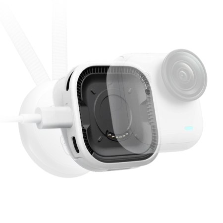 The magnetic base with pogo pins holds your GO Ultra securely in standalone mode. The USB-C port lets you connect a charger or power bank so you can record much longer than on the camera’s internal battery alone — perfect for timelapses, streams and long recording sessions.