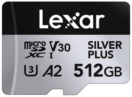 Rated V30, the Lexar Professional SILVER PLUS microSDXC UHS-I Card is designed for burst shooting without dropped frames and smooth 4K 60 FPS ultra-HD video recording.