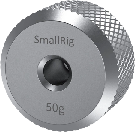 SmallRig 2459 Counterweight (50 g) is a weight that helps balance heavier camera sets on gimbals (e.g. DJI Ronin-S, Ronin-SC, or Zhiyun-Tech devices). Its 1/4"-20 thread on one side and 1/4"-20 hole on the other allow you to easily connect several counterweights to precisely adjust the balance to the user's needs.