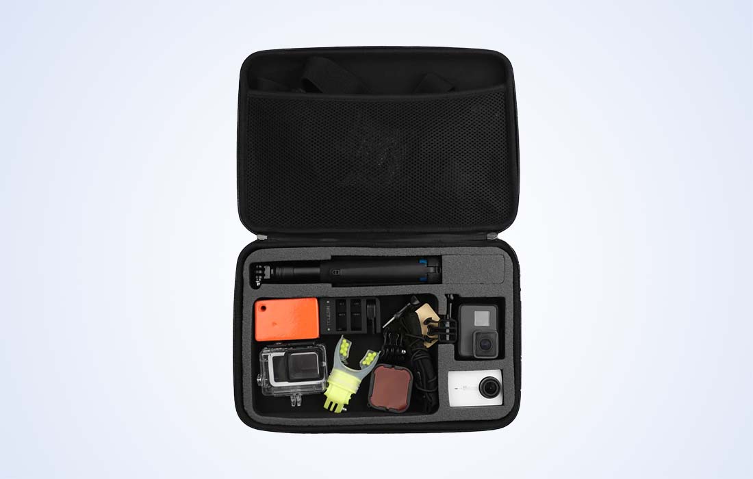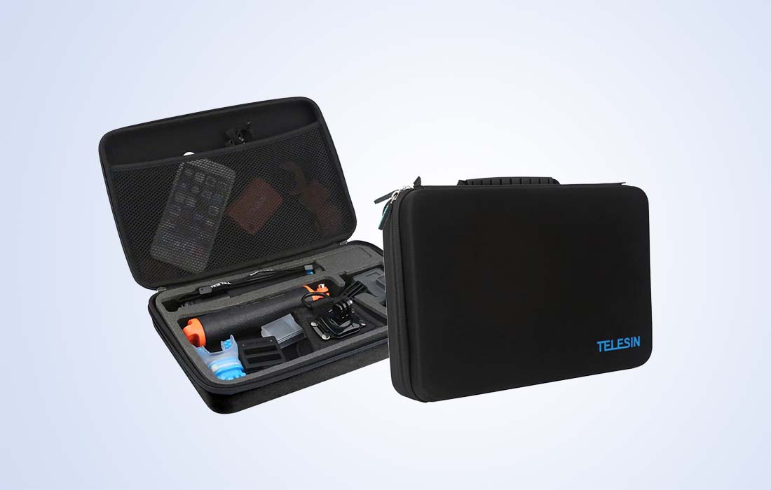 - Make it easier to transport and store your action camera and the accessories you need. The Telesin GP-PRC-310-BK bag is distinguished by its large capacity and durability. Special compartments