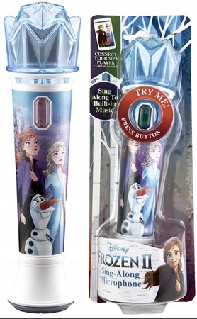 - Magiczny mikrofon z funkcją karaoke i możliwością podłączenia do telefonu lub MP3. Wbudowane piosenki i świecąca góra dodają uroku. Idealny prezent dla małych fanów Elsy i Anny!