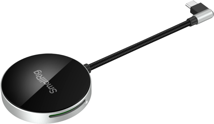 Kątowe złącze 90° zapewnia bezpieczne dopasowanie i łatwiejsze zarządzanie kablami. Lekka i kompaktowa budowa umożliwia wygodne przenoszenie i przechowywanie czytnika.