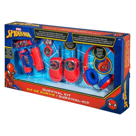 - Spiderman Zestaw Akcji Ratunkowej to zestaw pięciu zabawek: lornetki, kompasu, latarki, walkie-talkie i słuchawek. Pozwala na przygody godne Spidermana i zabawę w grupie. Idealny dla dzieci od 3 lat.
