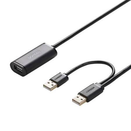 UGREEN US137 Kabel przedłużający 2x USB 2.0, aktywny, 10m (czarny)
