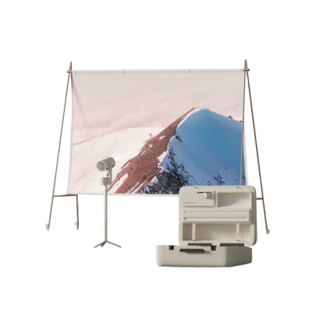 XGIMI MoGo 3 Pro 4 w 1 to kompletny zestaw mobilnego kina. Zawiera projektor Full HD, ekran 70″, kreatywny filtr, PowerBase Stand z akumulatorem oraz etui transportowe. Szybkie ustawienie i gotowe do seansu!