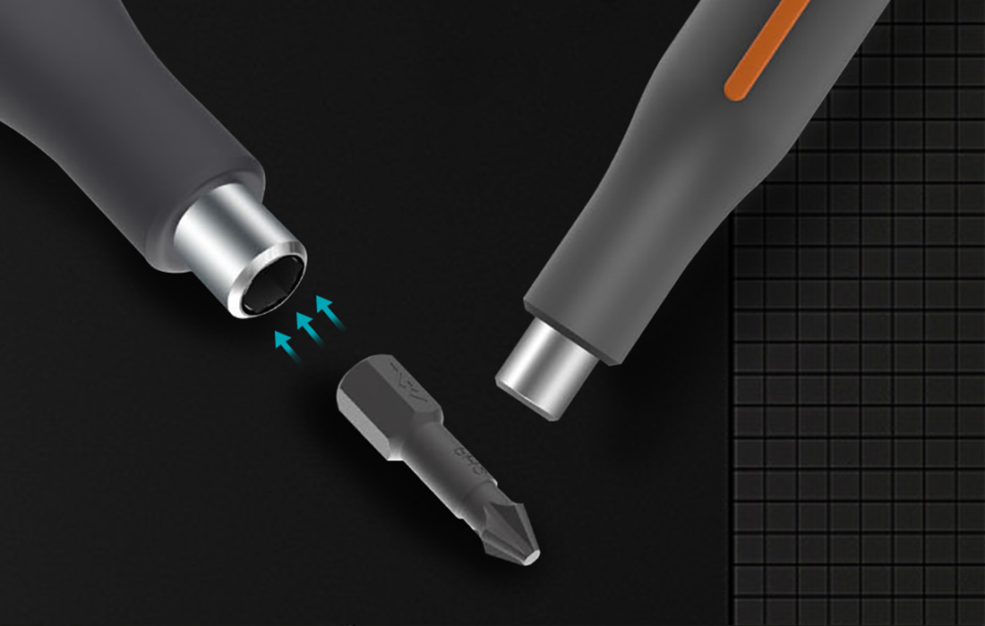 Rączka wkrętaka została precyzyjnie wyprofilowana, aby najlepiej możliwie leżała w dłoni. Przekłada się to na wygodę i wydajność w pracy. A jeśli mowa o wygodzie, namagnetyzowane bity zapobiegną ześlizgiwania się śrub podczas wkręcania. Zapomnisz o upadaniu elementów na podłogę i wielogodzinnym poszukiwaniu ich.